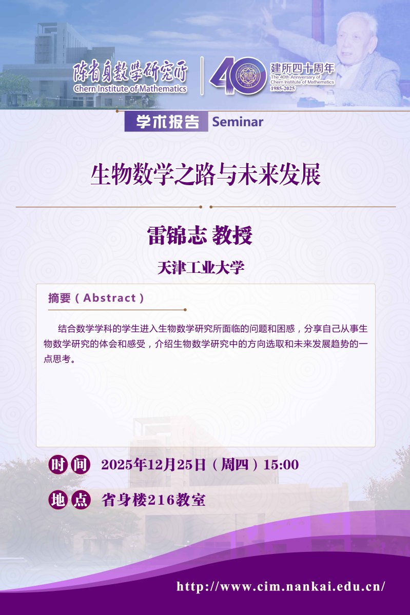 雷锦志 教授:生物数学之路与未来发展